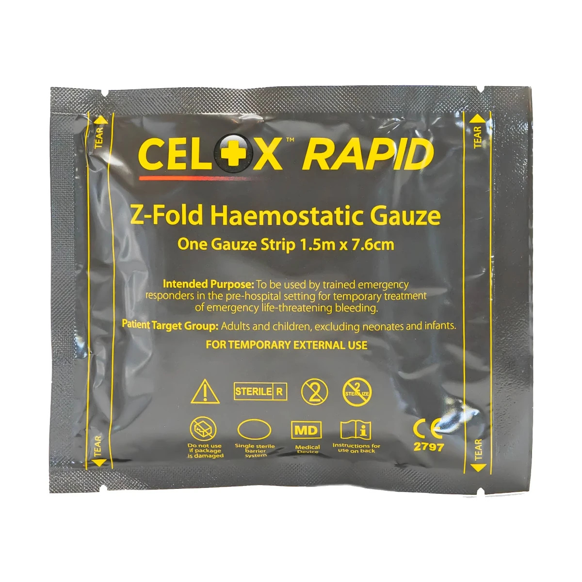 Złożenie w kształt „Z” – umożliwia precyzyjne założenie na ranę i szybkie tamponowanie krwawienia.